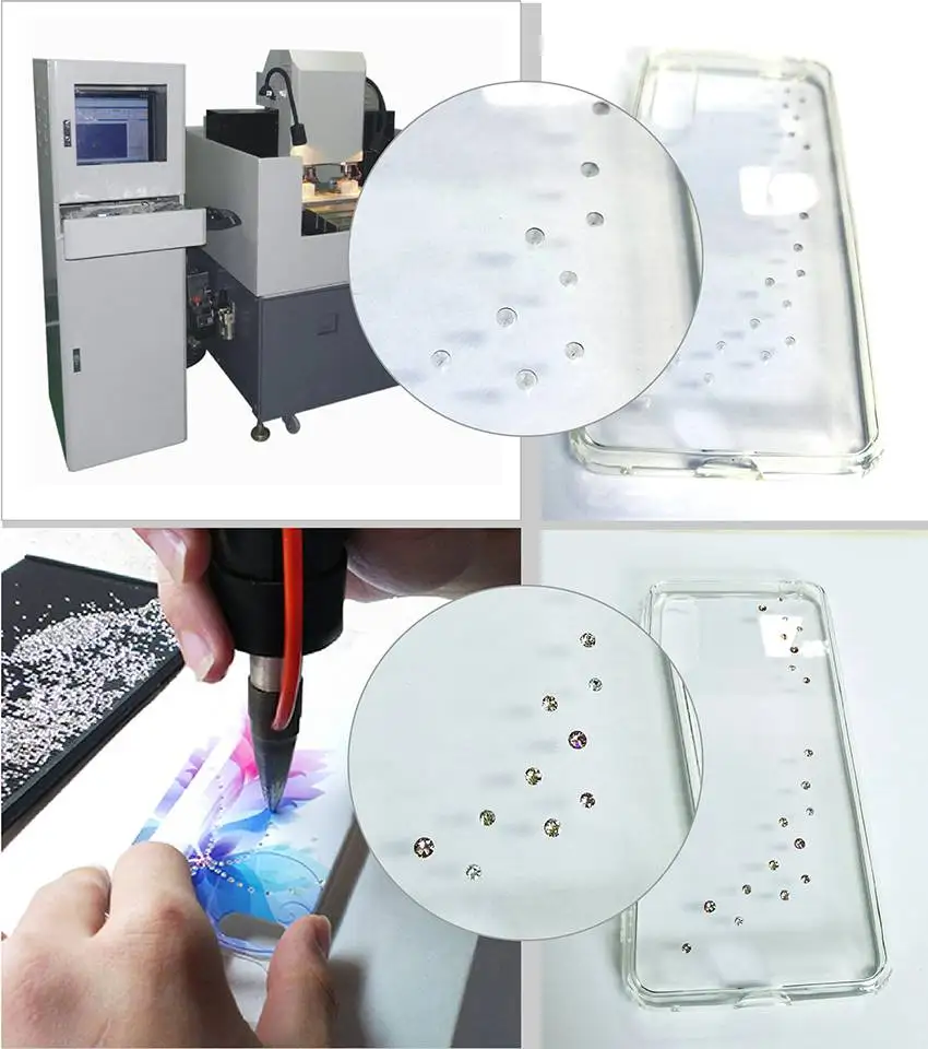 一说到手机壳镶钻,大多数人的反应:不就是用胶水粘几颗玻璃钻吗?今天我给大家介绍一种不需要点胶水就能把水钻镶嵌在塑胶壳上的工艺。